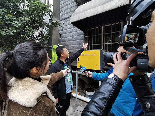 公司負責人陪同環保部門領導、株洲電視臺檢查報道小區油煙改造示范工程